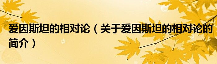 本文关于爱因斯坦的相对论的简介就讲解完毕,希望对大家有所帮助。