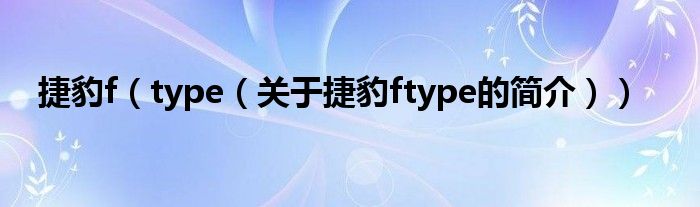 大家好,捷豹f type,关于捷豹f type的简介很多人还不知道,现在让我们一起来看看吧!