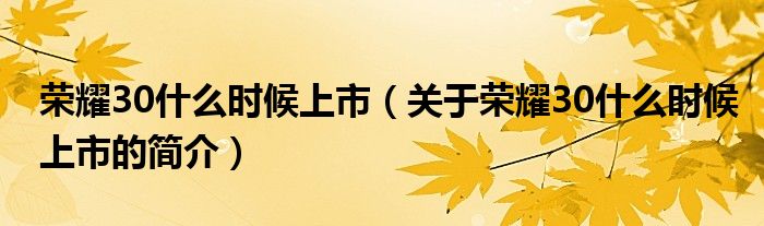 本文关于荣耀30什么时候上市的简介就讲解完毕,希望对大家有所帮助。