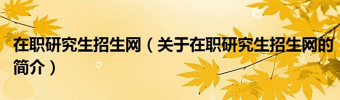1、在职研究生招生网是一家关于在职研究生招生信息的权威网站。