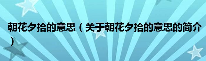 本文关于朝花夕拾的意思的简介就讲解完毕,希望对大家有所帮助。