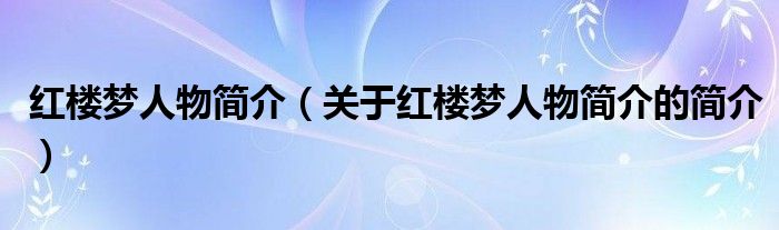 本文关于红楼梦人物简介的简介就讲解完毕,希望对大家有所帮助。