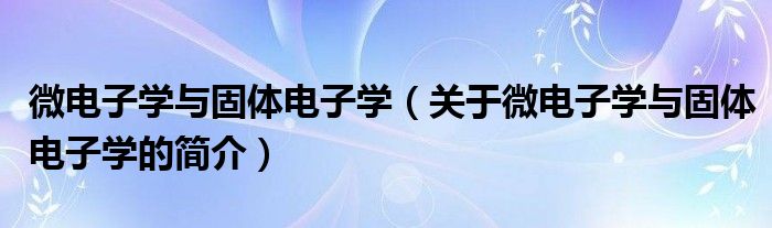 本文关于微电子学与固体电子学的简介就讲解完毕,希望对大家有所帮助。