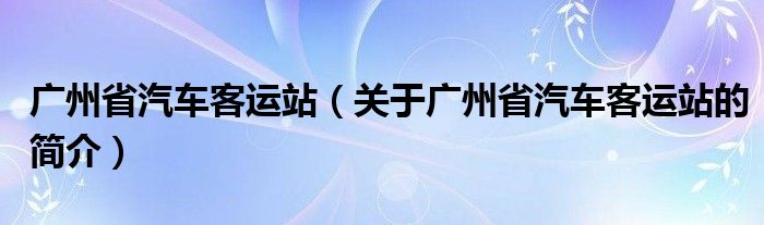 本文关于广州省汽车客运站的简介就讲解完毕,希望对大家有所帮助。