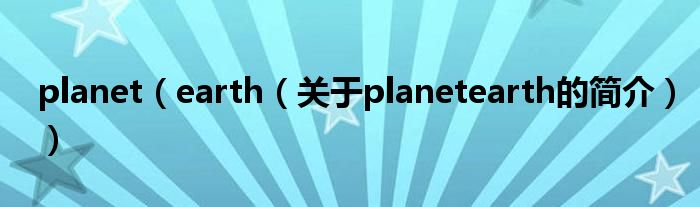 本文关于planet earth的简介就讲解完毕,希望对大家有所帮助。