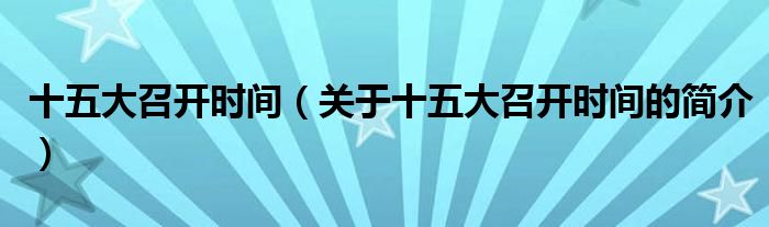 本文关于十五大召开时间的简介就讲解完毕,希望对大家有所帮助。