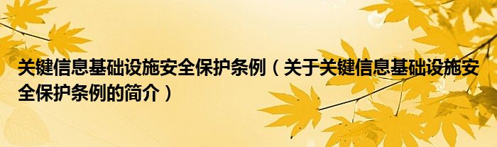 本文关于关键信息基础设施安全保护条例的简介就讲解完毕,希望对大家有所帮助。