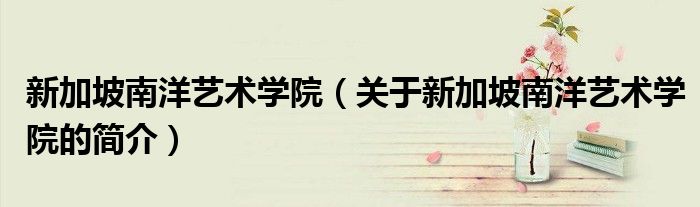 本文关于新加坡南洋艺术学院的简介就讲解完毕,希望对大家有所帮助。