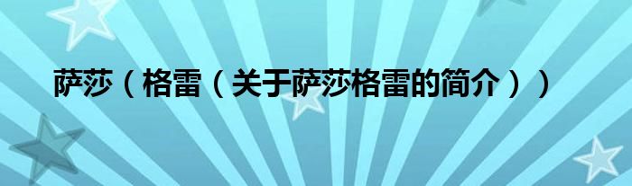 大家好,萨莎 格雷,关于萨莎 格雷的简介很多人还不知道,现在让我们一起来看看吧!