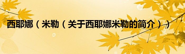 本文关于西耶娜 米勒的简介就讲解完毕,希望对大家有所帮助。
