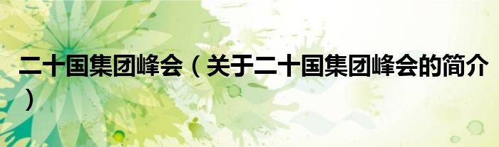 大家好,二十国集团峰会,关于二十国集团峰会的简介很多人还不知道,现在让我们一起来看看吧!