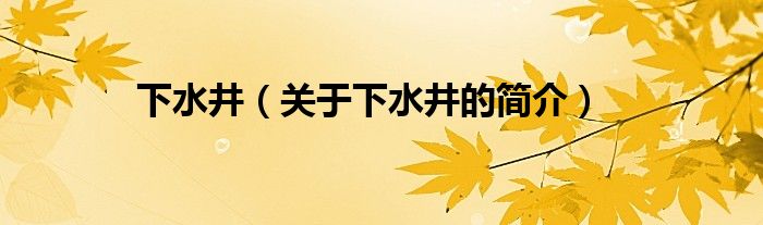 本文关于下水井的简介就讲解完毕,希望对大家有所帮助。