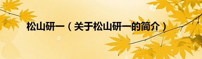 本文关于松山研一的简介就讲解完毕,希望对大家有所帮助。