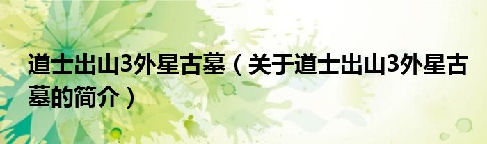 本文关于道士出山3外星古墓的简介就讲解完毕,希望对大家有所帮助。