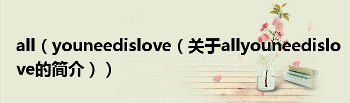 大家好,all you need is love,关于all you need is love的简介很多人还不知道,现在让我们一起来看看吧!
