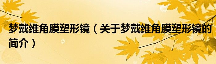 本文关于梦戴维角膜塑形镜的简介就讲解完毕,希望对大家有所帮助。