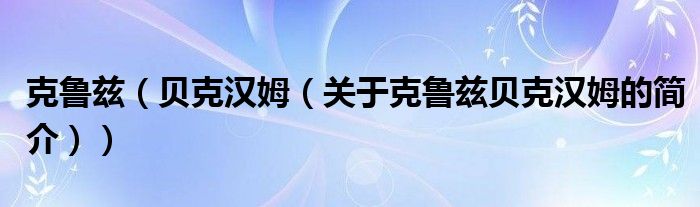 本文关于克鲁兹 贝克汉姆的简介就讲解完毕,希望对大家有所帮助。