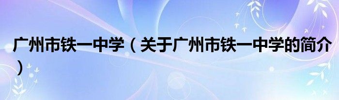 大家好,广州市铁一中学,关于广州市铁一中学的简介很多人还不知道,现在让我们一起来看看吧!