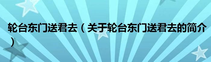 本文关于轮台东门送君去的简介就讲解完毕,希望对大家有所帮助。
