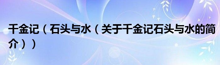 本文关于千金记 石头与水的简介就讲解完毕,希望对大家有所帮助。
