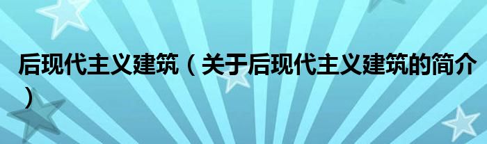本文关于后现代主义建筑的简介就讲解完毕,希望对大家有所帮助。