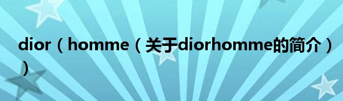 大家好,dior homme,关于dior homme的简介很多人还不知道,现在让我们一起来看看吧!