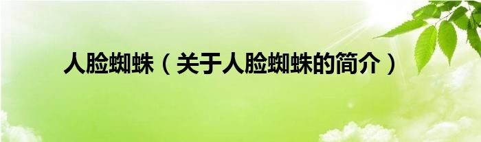 大家好,人脸蜘蛛,关于人脸蜘蛛的简介很多人还不知道,现在让我们一起来看看吧!