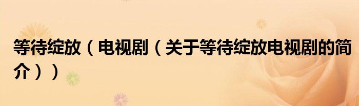 本文关于等待绽放 电视剧的简介就讲解完毕,希望对大家有所帮助。