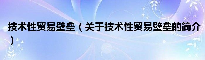大家好,技术性贸易壁垒,关于技术性贸易壁垒的简介很多人还不知道,现在让我们一起来看看吧!