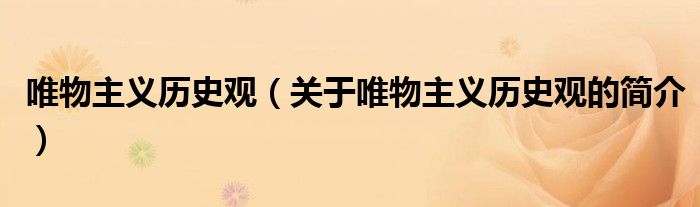 本文关于唯物主义历史观的简介就讲解完毕,希望对大家有所帮助。