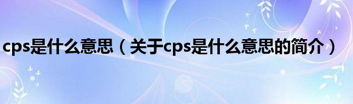本文关于cps是什么意思的简介就讲解完毕,希望对大家有所帮助。