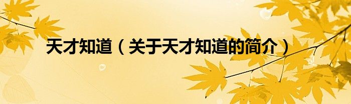 本文关于天才知道的简介就讲解完毕,希望对大家有所帮助。
