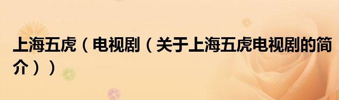 本文关于上海五虎 电视剧的简介就讲解完毕,希望对大家有所帮助。