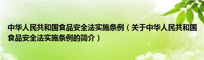 本文关于中华人民共和国食品安全法实施条例的简介就讲解完毕,希望对大家有所帮助。