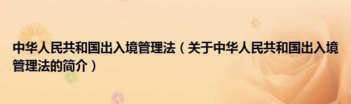 大家好,中华人民共和国出入境管理法,关于中华人民共和国出入境管理法的简介很多人还不知道,现在让我们一起来看看吧!