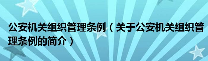 本文关于公安机关组织管理条例的简介就讲解完毕,希望对大家有所帮助。