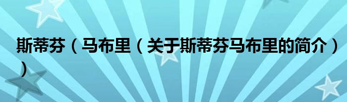 大家好,斯蒂芬 马布里,关于斯蒂芬 马布里的简介很多人还不知道,现在让我们一起来看看吧!