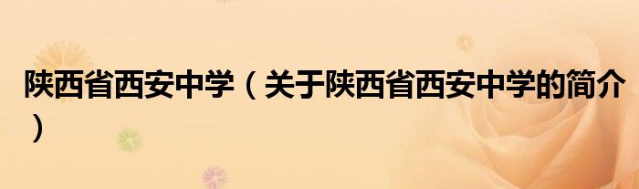 大家好,陕西省西安中学,关于陕西省西安中学的简介很多人还不知道,现在让我们一起来看看吧!