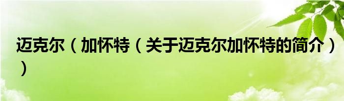 大家好,迈克尔 加 怀特,关于迈克尔 加 怀特的简介很多人还不知道,现在让我们一起来看看吧!