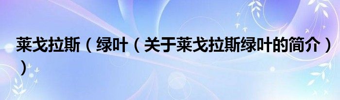 本文关于莱戈拉斯 绿叶的简介就讲解完毕,希望对大家有所帮助。