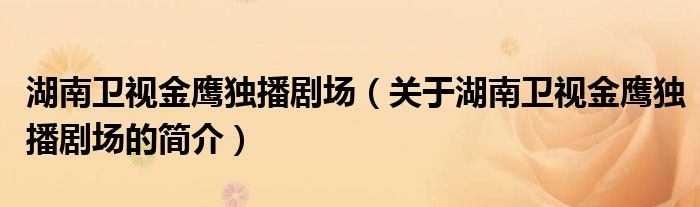 本文关于湖南卫视金鹰独播剧场的简介就讲解完毕,希望对大家有所帮助。