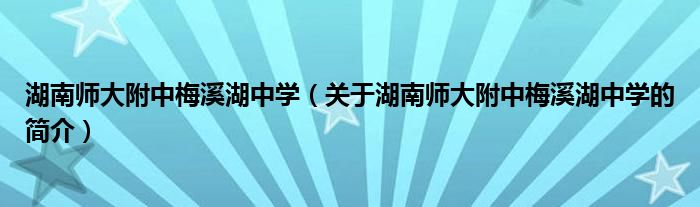 本文关于湖南师大附中梅溪湖中学的简介就讲解完毕,希望对大家有所帮助。