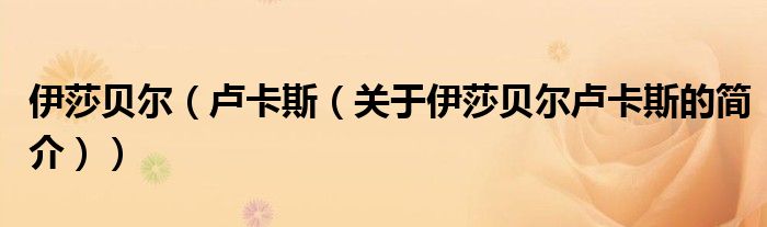 本文关于伊莎贝尔 卢卡斯的简介就讲解完毕,希望对大家有所帮助。