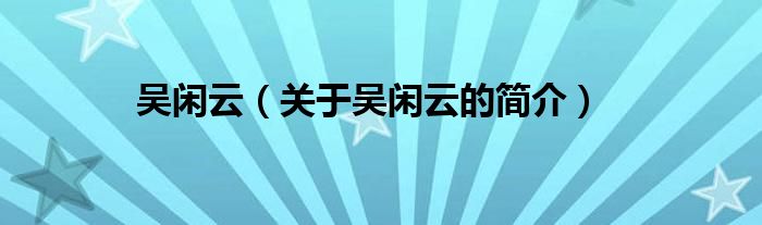 本文关于吴闲云的简介就讲解完毕,希望对大家有所帮助。