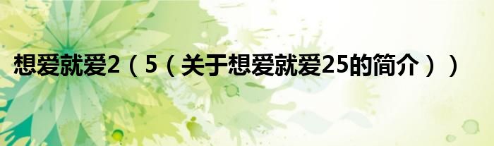 大家好,想爱就爱2 5,关于想爱就爱2 5的简介很多人还不知道,现在让我们一起来看看吧!