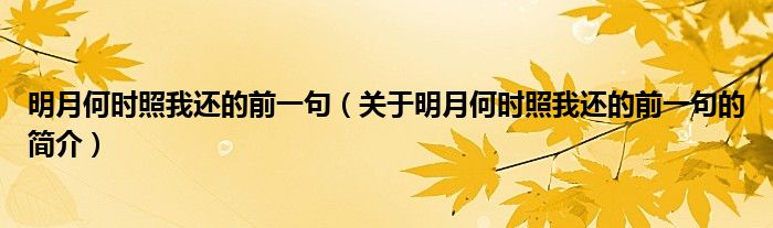 本文关于明月何时照我还的前一句的简介就讲解完毕,希望对大家有所帮助。