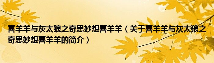 本文关于喜羊羊与灰太狼之奇思妙想喜羊羊的简介就讲解完毕,希望对大家有所帮助。