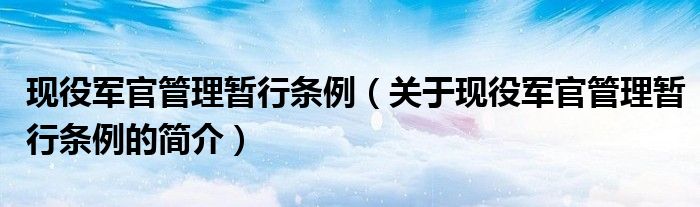 本文关于现役军官管理暂行条例的简介就讲解完毕,希望对大家有所帮助。
