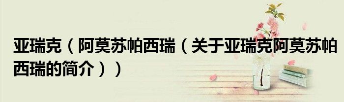 本文关于亚瑞克 阿莫苏帕西瑞的简介就讲解完毕,希望对大家有所帮助。