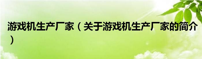 本文关于游戏机生产厂家的简介就讲解完毕,希望对大家有所帮助。